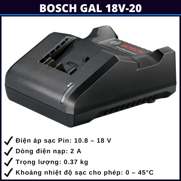 Không cần phải đầu tư vào sạc nhanh nếu công việc của bạn mang tính ổn định, không yêu cầu xoay vòng pin liên tục. Bosch GAL 18V-20 chính là lựa chọn cân bằng giữa giá thành hợp lý, độ bền cao và hiệu suất sạc ổn định. Nếu bạn đang sử dụng các thiết bị Bosch 18V phổ thông, đây là chiếc sạc đủ dùng – đáng tin – tiết kiệm lâu dài.