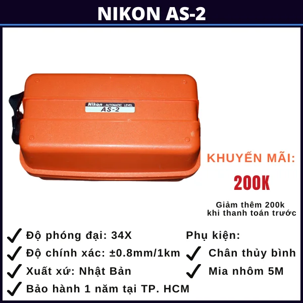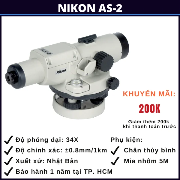 Máy thủy bình Nikon AS-2 là một sản phẩm chất lượng cao được sản xuất bởi Nikon, một thương hiệu danh tiếng trong lĩnh vực công nghệ đo đạc. Với sự kết hợp giữa độ chính xác, độ bền và tính năng thông minh, máy thủy bình Nikon AS-2 đã nhận được nhiều đánh giá tích cực từ các chuyên gia và người sử dụng.
